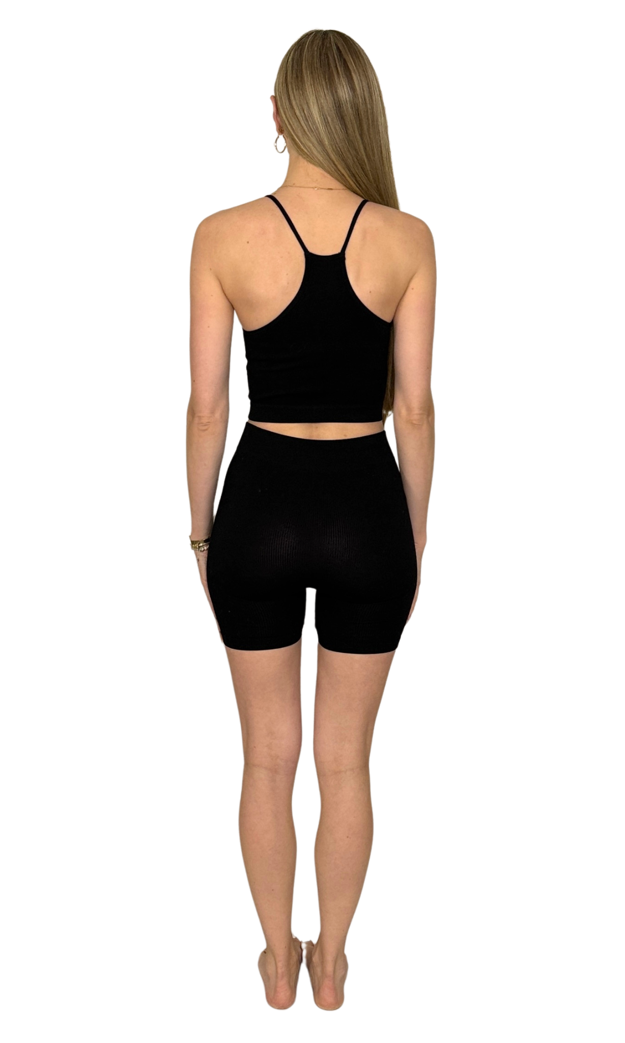 Ribbed biker shorts with ribbed crop top, sold as a set. The sweat-wicking fabric will keep you cool and comfortable, so you can focus on your workout or lounging. The tight compression design is perfect for all kinds of activities, giving you the freedom to move while still providing maximum support.